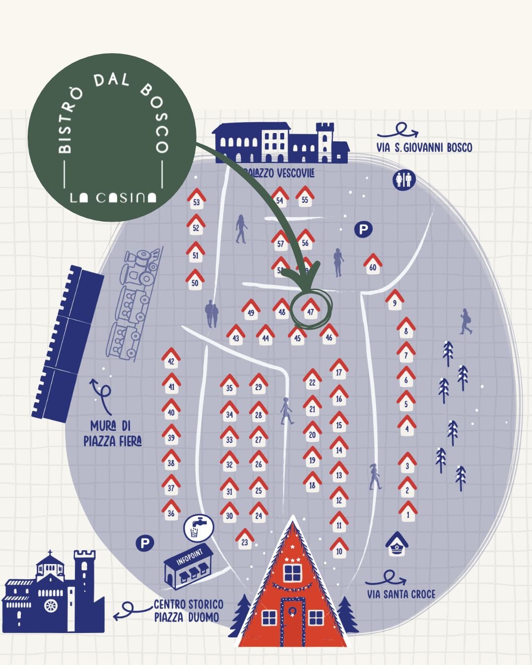 Da quella casetta — La Casina — nasce il nostro Bistrò dal Bosco, che ogni anno torna ai Mercatini con la sua magia e con una proposta che profuma di legna, neve e tradizione.